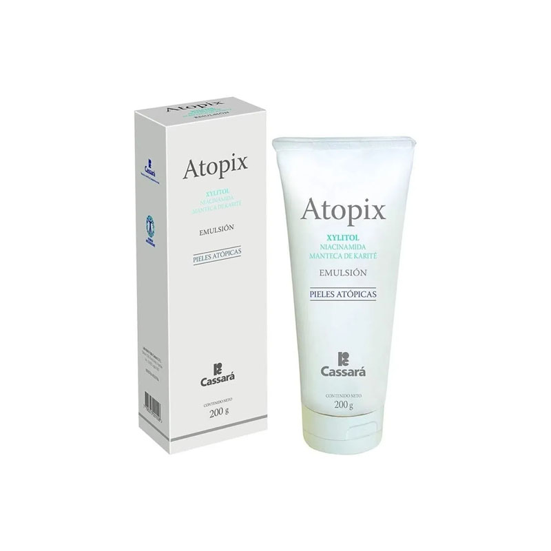 Atopix es una fórmula enriquecida en Xylitol, Niacinamida, Manteca de Karité, Glicerina y Ácido Hialurónico. Por su gran poder hidratante y regenerador de la barrera epitelial, actúa sobre alteraciones de la piel generalizadas en el eczema, previniendo los brotes.