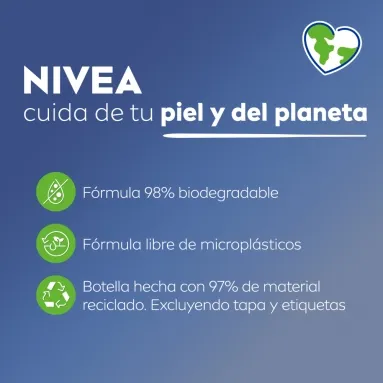 El Agua Micelar NIVEA Regeneradora está enriquecida con Complejo de Aminoácidos y Suero al 5% con Pantenol y Escualano. Restaura la humedad y se regenera para una piel descansada a la mañana siguiente. Es un desmaquillante eficaz para el maquillaje a prueba de agua, las impurezas y la suciedad con unas ligeras pasadas, sin dejar residuos grasos. No es necesario frotar, por lo que limpia la piel con suavidad. Usar en rostro, ojos y labios. No contiene perfume, está aprobada dermatológica y oftalmológicamente. Adecuada para pieles sensibles y secas.